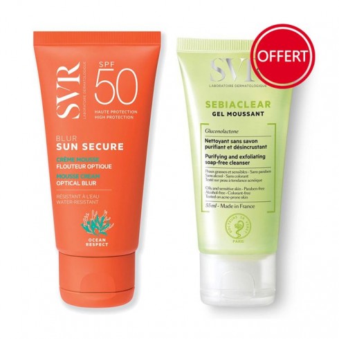 SVR Sun Secure Blur Crème Mousse Flouteur Optique SPF 50 50 ml à la texture mousse abricotée est une crème entre base de maquillage et protection solaire qui convient parfaitement aux peaux hypersensibles au soleil.